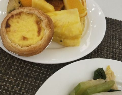 酒店包含了早餐,我专门订了早餐。早上刷卡去一楼大厅吃自助说是西式的,其实有中式的菜,西式的肉类也不多。那是西式的糕点,特别全,可惜没太有想吃的。每天我一定都要吃蛋挞,然后一定要来一杯咖啡,咖啡特别好,是咖啡机现打的。