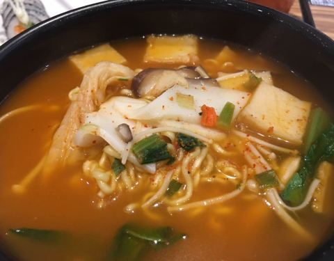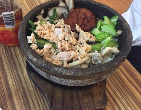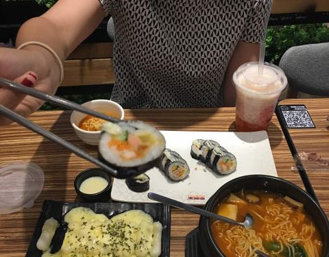 匆忙中来到了午餐时间,遇到这家店,看到吃饭的人还挺多的就试试看把。点了拌饭,这个应该是他们家特色吧,五花肉的那种,对于我这个怕油腻的人来讲,略微有点没办法不浪费了……汤里面的内容挺多的,肉松寿司卷一口下去还是很满足,上餐挺快,适合出差。