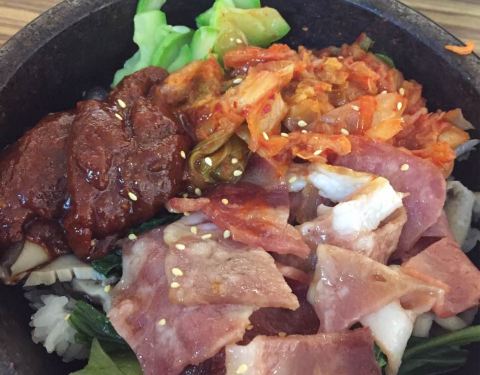 匆忙中来到了午餐时间,遇到这家店,看到吃饭的人还挺多的就试试看把。点了拌饭,这个应该是他们家特色吧,五花肉的那种,对于我这个怕油腻的人来讲,略微有点没办法不浪费了……汤里面的内容挺多的,肉松寿司卷...