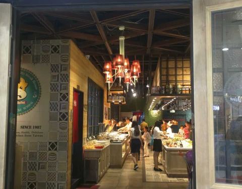 披萨还不错,水果还算新鲜,但好吃的不多,在台湾吃过,那边的牛排分量很大,菜品种类很多,很火爆,...