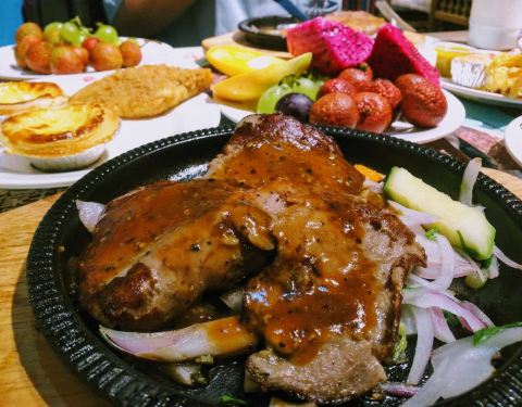 超级喜欢吃这家的小牛排,嫩嫩的,最主要的是,这将虽然是以牛排为主,但是其他的自助小料里做的都是很不错的,该有的很多好吃的都有,环境也很好,每次来这里都会吃的好饱呀!