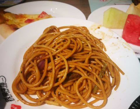 - 披萨还不错,水果还算新鲜,但好吃的不多,在台湾吃过,那边的牛排分量很大,菜品种类很多,很火爆,...