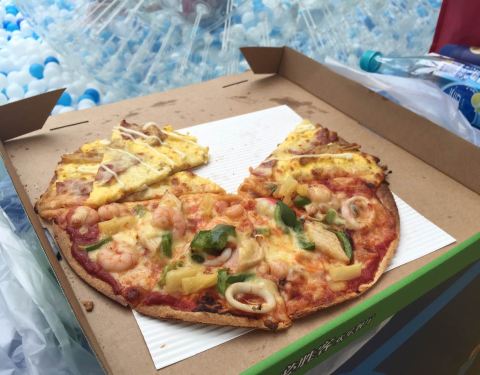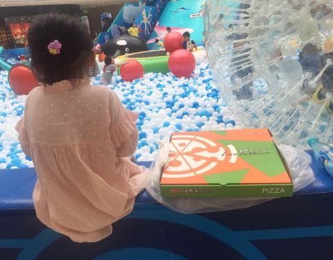 昨天网上抢的券。好划算。好大一份海鲜披萨。好好吃。是薄饼的。面皮子不厚。时候孩子和不喜欢厚皮的人吃。孩子等着去玩万达的海底小纵队。打包在那里坐等进去。披萨大概要等20分钟的样子。口味糯香脆值得等