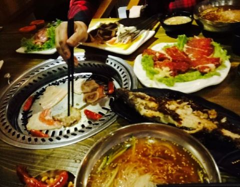 四个人额外又点了一份冷面,吃到撑。这家也算是很老的店了,从二市场搬到了大商东,店里的装潢也很不错了,之所以不明白什么时候装的,是因为很久没去了。这家算是环境不错并且性价比很高的一家店了。电话提前预定了下,因为怕这个小地方不能用,店主态度还是灰常不错的。烤肉的话每家的味道的确是都大同小异,本人不太稀饭套餐里的拌花菜,因为,我是肉食动物。有些肉烤起来不太容易嚼,很硬。这边要特别表扬这边的伙计,超勤快,换箅子很勤,差不多刚刚粘箅子就主动过来换了。