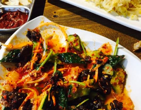 位置就在清原大商商场的东边,之前国庆团完打算去吃的,只是人太多,没吃上,这回四点多就去了,已经有多人了,上大麦茶的壶很精美,送的辣鱼也很鲜美,牛排,风干肠都很爽口,牛胸口和猪五花都太肥了,尤其牛胸...