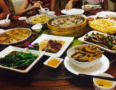 四个大人加1个小孩,我们晚上7点左右到没位,上了2楼包间环境很不错,里边的装潢很好。上完菜服务员进出老是忘记关门,4,8元的小点只有白粥,可是一个坑,其余都还可以接受。包间加20如果请客地方不错,上档次。