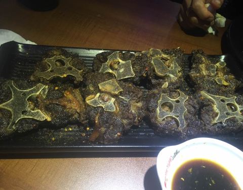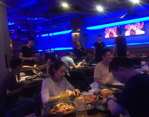 店铺不大,桌椅很拥挤,但整体不乱还蛮有大排档的气势。服务员动作很快,服务也很好。墙面上是霓虹灯装饰,蛮有小感觉。服务员态度很好,个个都很麻利很勤快,看到旁边桌骨盆多了,就主动倒掉。
