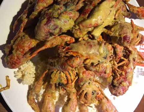 第一次来这家红盔甲,店面不大,虽然在路边,但感觉并不是很好找。环境还是挺干净的,我们去的那天人不多,但听说日常是要排队的。至尊的龙虾个都很大,比一般吃的龙虾都大。冰镇小龙虾比较好吃,十三香的反而并不是很入味。可以点一大扎啤酒,特别爽。其他的比如蛤蜊等就比较一般了,反正这家店也主打的是小龙虾。