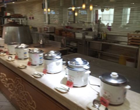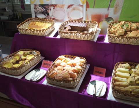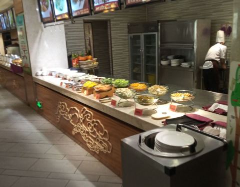在聚丰大酒店的三层,地方不小,桌椅之间比较宽敞。环境也还不错。住在聚丰大酒店,自助早餐在这里吃,感觉品种还是比较丰盛的,主食的种类很多,馒头,油条,玉米,红薯,山药都有,菜的种类也不少。还有现做的面条和混沌。水果和饮料也不错,服务中规中矩。