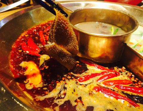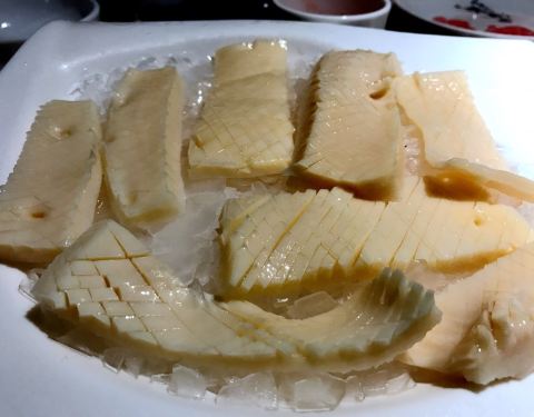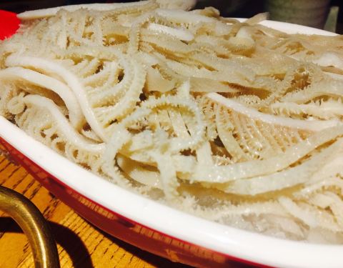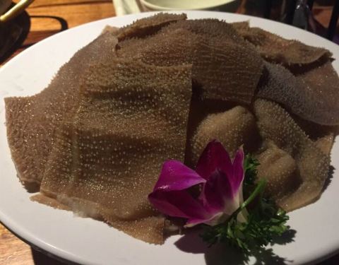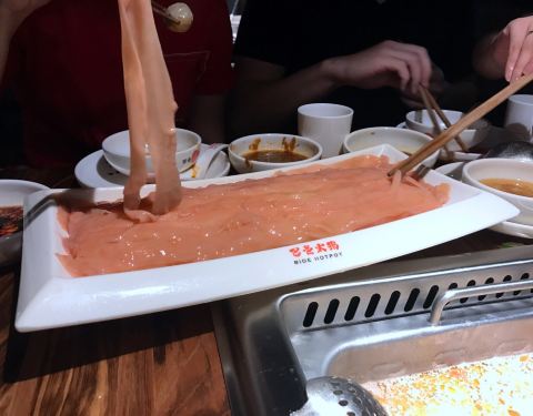 捞出的毛肚爽脆无比 ✦九尺鹅肠 鹅肠有两三㎝粗 晶莹透亮,下锅至微微卷曲便可入口 ✦黄喉 一上...