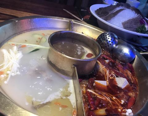 巴邑火锅✦(港隆广场店) 带着点微风,下着点小雨儿,摇曳缀着花儿的红色儿裙摆赴一场舌尖的火辣盛宴。 俗话说来巴邑,不吃辣锅就不算吃过巴邑火锅。 众口难调,那么点鸳鸯锅就不会错。 他们家与众不同的就是多了一个菌锅,牛菌菇熬制,不会吃辣的可以拿它先开胃,涮蔬菜白肉再好不过了。 吃火锅要先吃肉 再吃丸 最后才是解腻的蔬菜们 ✦毛肚 印象最深的是他家的毛肚 因为这么大片的毛肚我还真没有见过 七上八下,捞出的毛肚爽脆无比 ✦九尺鹅肠 鹅肠有两三㎝粗 晶莹透亮,下锅至微微卷曲便可入口 ✦黄喉 一上桌,看着黄喉有些奇怪 怎么跟往常看到的有所不同呢? 哦原来别家使用的都是猪黄喉,他家的是牛黄喉 怪不得看着更厚实了,久煮不老 ✦肥牛/羊肉卷 他家的食材注重原产地直送,牛羊肉也是 每年最肥美的季节会挑选好一整年的需求,送往各大门店进行食用 动物腥味不重,需放到清汤中慢慢品尝 ✦炒饭 12一份的炒饭在各大餐馆中无疑性价比颇高 更何况他家的粒粒均匀饱满,一嚼,口齿留香。 要推荐的还有很多,比如: 薄片均匀的黑鱼片 自家卤制的豆腐 拉丝儿的芝士包 无菌限量供应的绣球菌 Ps :巴邑世纪东方/天一店正在筹备中 巴邑火锅,第一次相遇。 下次光顾之时,愿在巴邑留下更多美好记忆。
