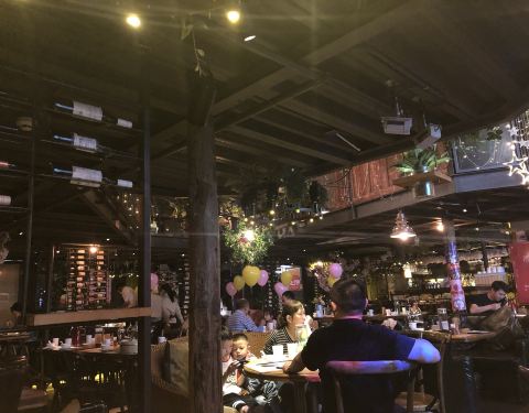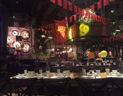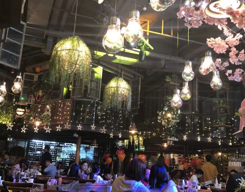 晚饭时候感觉置身街市。饮酒唱歌气氛还好