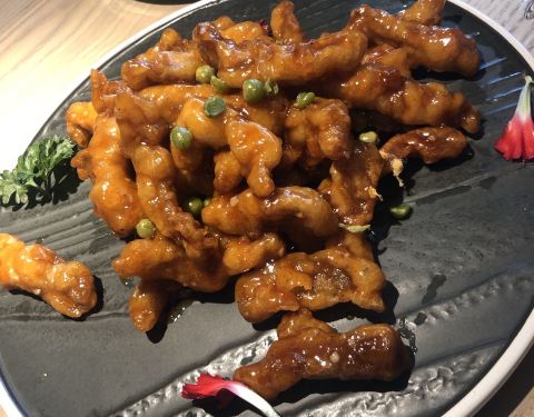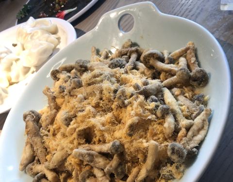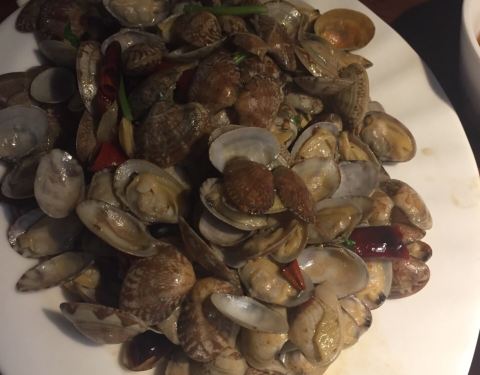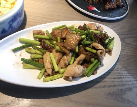 饭点需要排队,叫号特别逗,是个小孩子的声音,两个人花了一百多,点了9块钱的脊骨,还有蒜蓉粉丝虾,炒哈利,还有九转大肠(就是大肠里面夹山药),很好吃