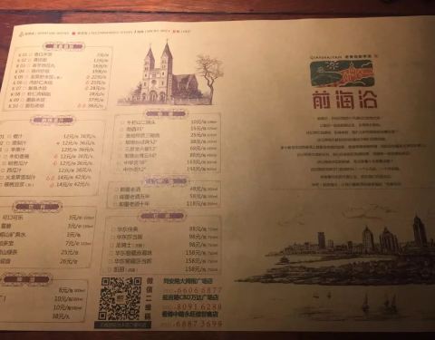 前海沿,名字倍有亲切感,用老青岛的地标命名,瞬间勾起童年记忆。主打老青岛的家常菜,位置在佳世客的二楼上,临近肯德基。 店内面积大,位置分区多,还有一辆老巴士车内的区域,孩子特别喜欢做到里面吃饭。餐桌基本是木质的,自助点单形式,餐具上都带着海鲜的图样,真是满满的海鲜味道。 第一次接触这家店,是之前在大拇指广场吃的,菜品实惠,份量多,鲁菜口味,特别喜欢。如今的菜单上也增加了一些辣菜和西式菜品,更加多样化了。 菜品口味都不错,性价比高,所以赶上饭点,都是要排队的。 如果开车去的话,饭后结账时,餐费小票盖章可抵扣停车费。