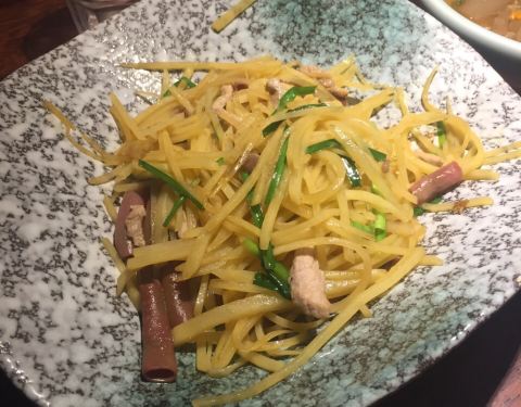 一家在青岛这里性价比比较高的店 门口的叫号系统和外婆家的类似 他家有个大肠,我是听小伙伴推荐说很不错 就和小伙伴点了一下 大肠很肥,里面包了山药 味道还可以 我能说青岛菜量太大 作为南方人很苦恼吗 粉丝虾的口感还蛮不错的 土豆丝海肠,海肠吃不习惯,有腥气
