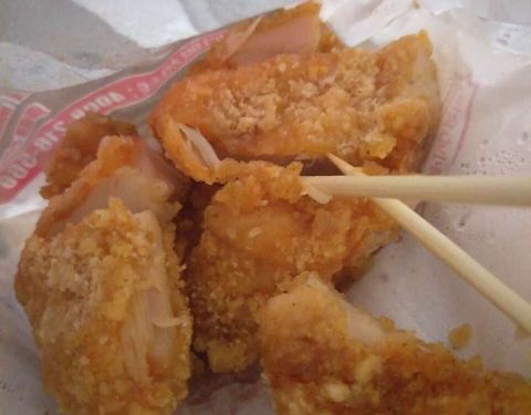 尝试了麻辣味的,不是很辣,但是有一点点咸。要是把鸡排切的分离一点就好了,每次吃一扎都都是连着的,