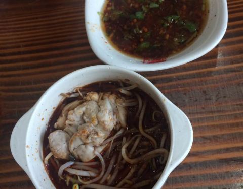 - 跟小伙伴一起,不太能吃辣,点的微微辣的汤底,食材看上去都比较干净,加的冒鸭血,冒宽粉味道超赞