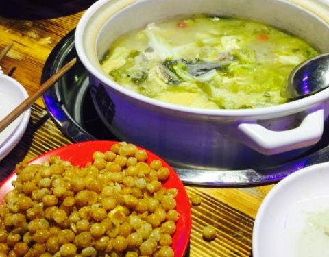 三斤多大黑鱼做的酸菜鱼锅,端上来的时候就感觉汤非常整洁,鱼片又白又嫩滑,鱼汤锅里还有酸萝卜也十分入味,份量足够四人多吃饱。粉条太宽太粘感觉咬不断,土豆加进去煮很美味,到后面会觉得有些咸,加汤后可以再下菜,盛了一晚酸菜汤,酸爽暖身。下次回来还要来吃。??????。