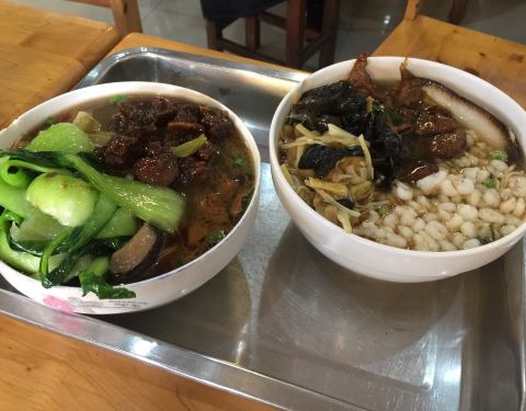 面馆在光福镇的一个小渔村里,小渔村建设得不错。面的浇头很多,面条都要自己端出来的。面很好吃。