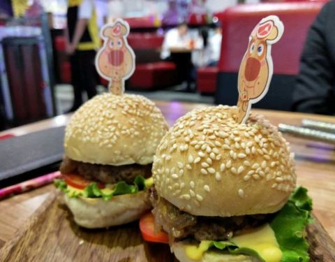 菜品换了以汉堡为主的餐点,汉堡的手打牛肉非常多汁,点了小朋友的迷你汉堡一份三个,很有饱足感,性价比很高,顺便也办了张会员卡,吃饱饭后还能接着玩游戏跟参加活动,刚好碰上店长来询问顾客满意度,刚好碰上准备要换...