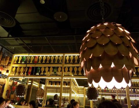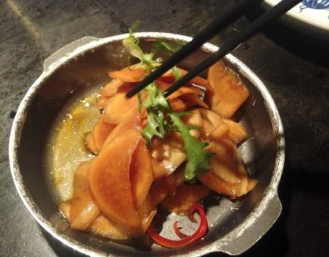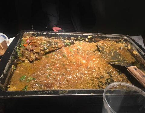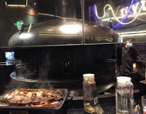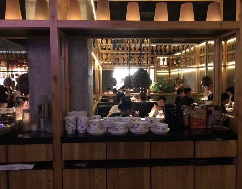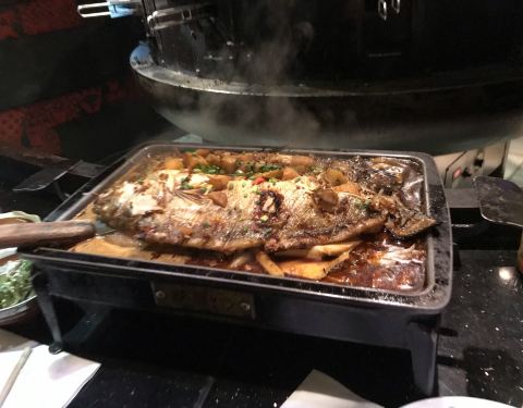 先说一下炉鱼的口味真的是非常的不错,我是5:30过去排队的,前面已经排了17桌,可见万象城的这条鲈鱼有多么火热,17桌大概等位子需要一个多小时,我就果断选择了吧台,没想到吧台这边有个大炉子,真的非常热。难怪大家都宁愿等着。但是鲈鱼上桌的时候味道确实不错。