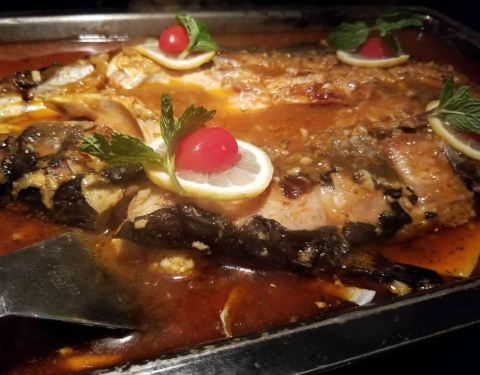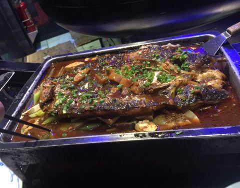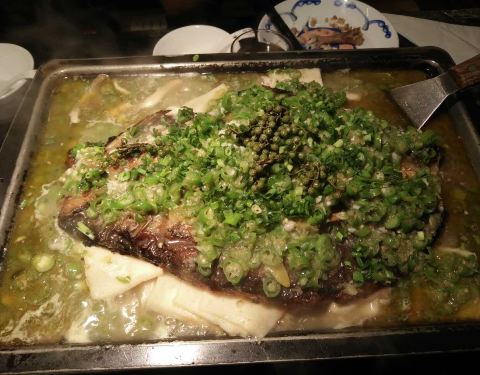 鱼很大,跟女朋友5点来的,外面排满了人,然后我们选择了吧台坐,最好是来早点。还可以吃到招牌鲈鱼哦