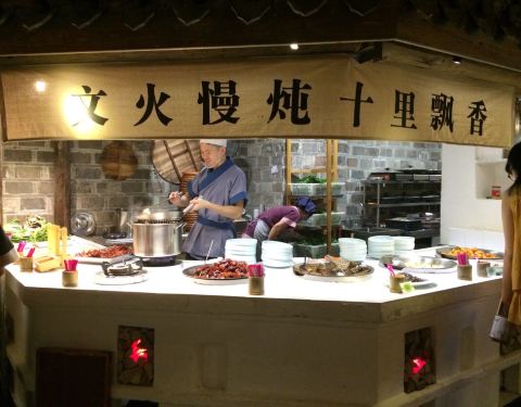 竹林人家旗下的一个品牌,主打宁波菜,走格调精致路线,将传统的宁波菜融入现代时尚元素,装修花了大本钱,将整个店打造成旧时街铺,古朴而有意境,小巧流水,乌篷船,进入店内就感觉穿越到了几百年前 点菜有个小...竹林人家旗下的一个品牌,主打宁波菜,走格调精致路线,将传统的宁波菜融入现代时尚元素,装修花了大本钱,将整个店打造成旧时街铺,古朴而有意境,小巧流水,乌篷船,进入店内就感觉穿越到了几百年前 点菜有个小竹筒,每个菜前面有菜签,想点什么菜就拿个菜签,点完菜将小桶给服务员,很有意思 红烧肉,色泽诱人,五花肉大块,味道还不错,不过略有点硬,再烧软些口感会更好,配饭相当不错 糯香仔排,糯米还是蛮软糯的,略有点油,味道还不错,管饱 现制豆腐,豆制品现场制作很具观赏性,老豆腐味道比较平淡,配的调料是榨菜、香菜和一个酱汁,不够有特色,建议搭配个特调酱汁 菜式基本是家常菜的升级版,比较符合宁波人的口味,菜量还可以,比较适合家庭聚餐