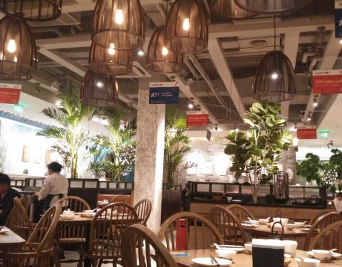 环境很好,路线也很好找,中南百货五楼就是。味道不错,点的香辣味,很辣,过瘾!