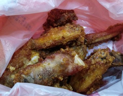 - 味道,鸡翅炸的外皮很脆,特喜欢皮脆的呀,虽说我只咬了一口尝尝,然后都被我妈和姥姥包了