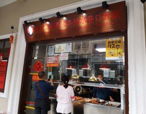 地址,水巷口3号,具体就是到中山骑楼那一带,然后进去水巷口里找找,招牌很大。环境,里面没具体看,黑乎乎一片,看着很旧很旧就是了。档口摆着出售的食品。味道,鸡翅炸的外皮很脆,特喜欢皮脆的呀,虽说我只咬...地址,水巷口3号,具体就是到中山骑楼那一带,然后进去水巷口里找找,招牌很大。环境,里面没具体看,黑乎乎一片,看着很旧很旧就是了。档口摆着出售的食品。味道,鸡翅炸的外皮很脆,特喜欢皮脆的呀,虽说我只咬了一口尝尝,然后都被我妈和姥姥包了。好吧,买少了,下次多买点。服务,表情比较冷淡,让我不是很舒适。态度倒是可以,用两袋子装好。标价,只买了鸡翅,7元一个。猪排,鸡中翅这些应该是按斤算,没问。总体,味道挺好,离家不远,还会去。