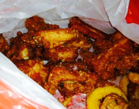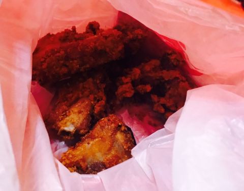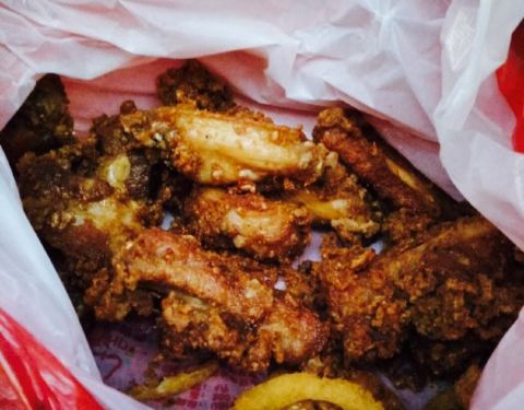 味道好极了,我要的是炸排骨,炸鸡翅。