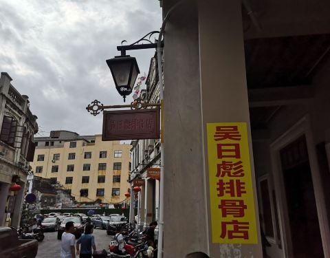 - 吴日彪蒜香猪扒在这边还是比较有名气的,这家店也是比较经典的店铺,跟旁边的陈记汤饭是隔着一个海南鸡店铺