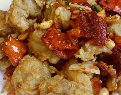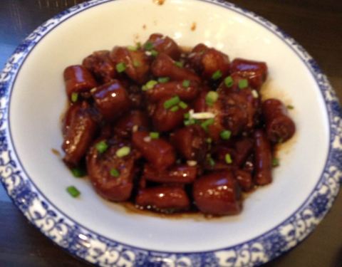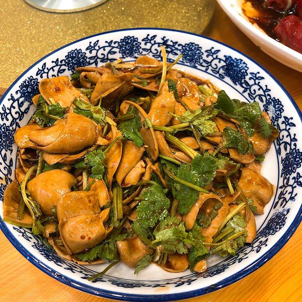 算好时间从灵山出来要赶在四点半开始营业时赶到老牛窝里。路上致电老店被告知要等第二批,新店告知可以先来等。无意中发现美味不用等可以提前取新店的号,连忙取号前面已经有十桌。四点四十左右到达新店,询问大概要到几点说是早的话六点晚的话不一定。但是我们吃完要赶路回老家。然后先森出面,不知道是出卖了色相还是声泪俱下,好心的老板大手一挥,去老店马上吃。其实都已经预约满了,但是听上去大概是预约的五点半来,而正好我们是吃完要赶路的不会很久。Anyway,还是非常感恩好心的老板! 按点评点了六个菜以后,老板告知差不多够了。确实量很大。典型的浓油赤酱,但是味道确实不错。不虚此行!吃饱喝足再次出发!馄饨,好大一只!