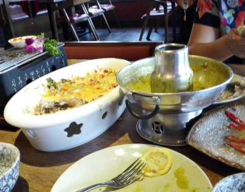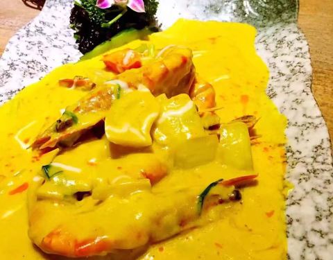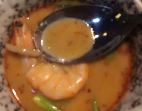 真的很不好吃,泰国菜里面吃的最难吃的一家,东西又少,酱料味太重,齁死了,吃个一两口就吃不下了,吃什么菜都是一个味,千万不要去,上当死了 咖喱大虾里面就六个虾,冬阴汤刚铺满锅底