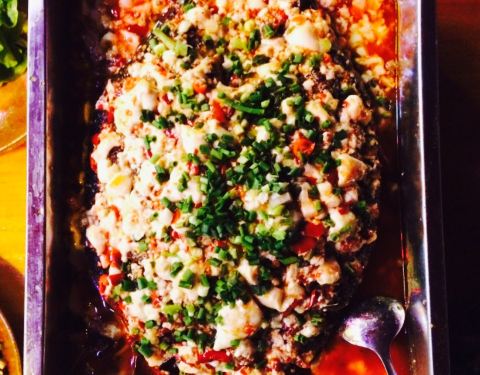 豆花烤鱼配秘制变蛋,简直好吃的不要不要的,因为只有两个人,菜量又大,两个菜就足够了,可惜眼睛还没饱,下次还来。老板很实诚哦^-^