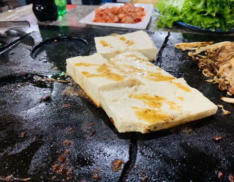 ...石烤炉上面有一块石头有点铁板烧的感觉,五花肉烤着吃是最香的,配着他家自己腌制的辣白菜味道非常好