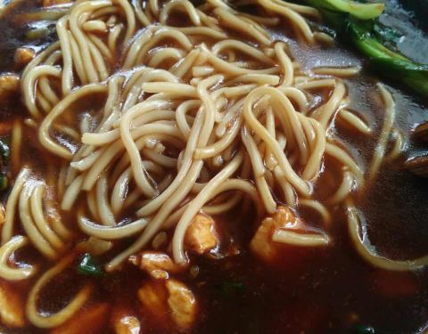 就在地铁口,出来就看到了。点了大肠素浇面,浇头很浓郁,面不软不硬,还不错,只是有点咸了