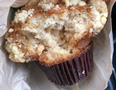头一次进去,还挺大一店,不过里面基本都坐满了。 本来只是想要一咖啡,排队的时候看见了大蘑菇头的马芬,长相超级可爱啊,于是也要了一个,非常的赞!壳上的酥粒儿香酥,里面的甜橘颗粒分明,酥的软的糯的梗的,口感层次丰富,下次一定要再买!