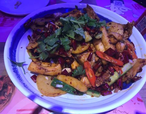 环境不错,东西也好吃,以前吃过干锅都比较咸,跟点菜的说了菜不要太咸,真的还好,还点了一个糍粑,因为肚子太饿了,忘记拍照了