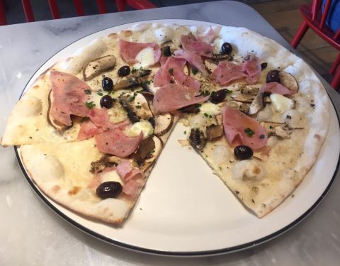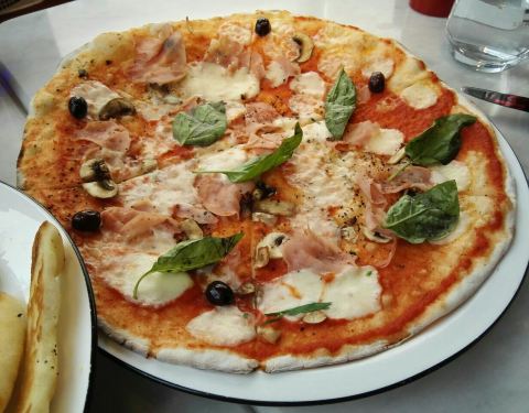 位置其实不是很好找,来的时候已经是晚上七八点,没有什么人排队,餐具是典型的法餐,其实分量一点都不多,披萨的底没有那么厚,吃起来还算比较可口。