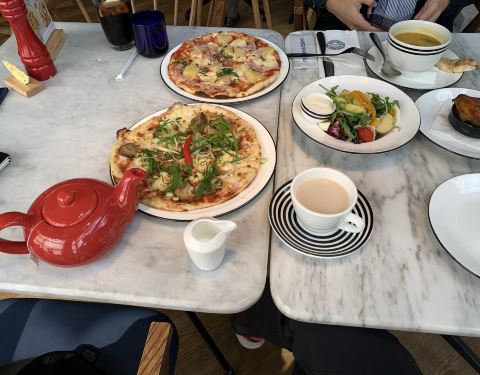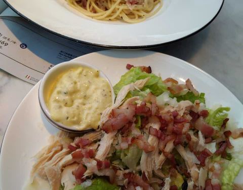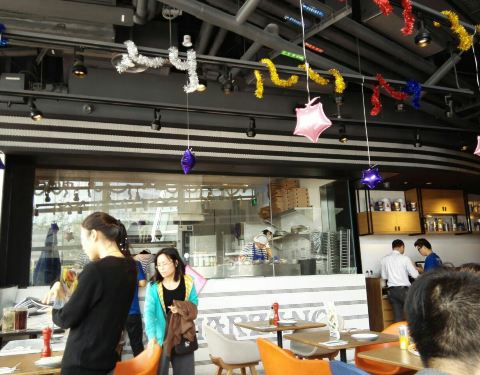 位于高大上的环球二楼,中午饭点人气火爆,12点左右已经座无虚席了,良好的用餐环境,精致的餐点是周边白领午餐的好去处,商务午餐平均六七十元一份,价格偏高,但是量很足,主打披萨,大众点评有优惠券可用!