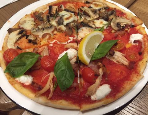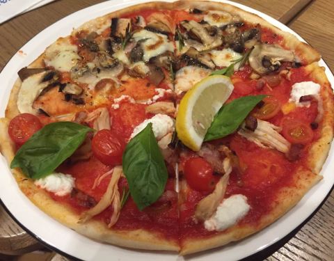 整个店面环境也还算不错 也有一定室外的空间可以坐 最喜欢的还是这里中午68的套餐 一个披萨加鸡...