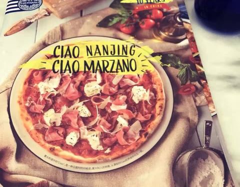 PizzaMarzano玛尚诺,招牌北京烤鸭披萨曾风靡上海,意大利薄底披萨 饼底烤的很脆 上面涂的酱…