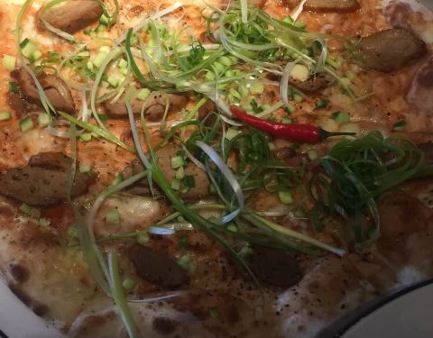 - 原先的经典烤鸭披萨,现在鸭肉肥而且腥味重,葱又实在是多,已经不好吃了