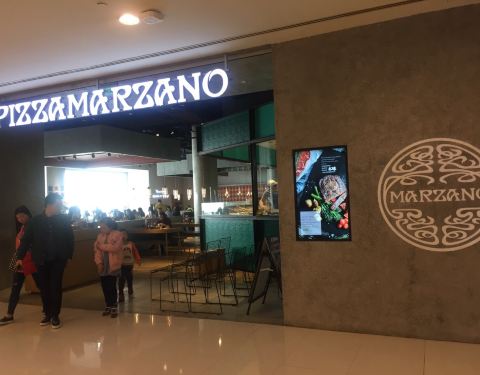 PizzaMarzano玛尚诺,招牌北京烤鸭披萨曾风靡上海,意大利薄底披萨 饼底烤的很脆 上面涂的酱料和烤鸭画龙点睛,中西结合的烤鸭披萨十分特别,几乎每桌必点。外国人也很爱来这里吃披萨和简餐。