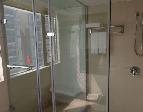 由于开会再次入住金辉煌酒店,号称四星级,其实有点老旧了,这次是套房,房间面积很大,两个卫生间还有桑拿房,但没有使用。2瓶免费水,免费的茶叶质量很差,没有咖啡。网上预定的比前台价格要便宜,自助餐质量一般。酒店位置不错,距离机场,海滨,鼎盛广场都很近,还算过得去吧。