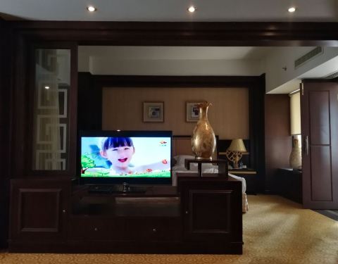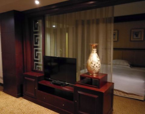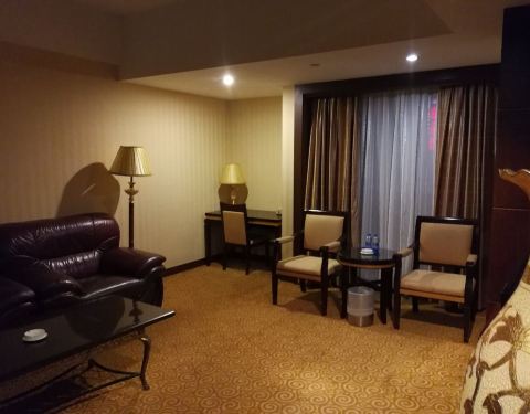 由于开会再次入住金辉煌酒店,号称四星级,其实有点老旧了,这次是套房,房间面积很大,两个卫生间还有桑拿房,但没有使用。2瓶免费水,免费的茶叶质量很差,没有咖啡。网上预定的比前台价格要便宜,自助餐质量一...