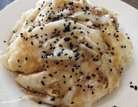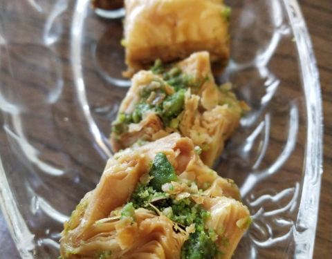 热的时候很好吃,另外一个饼浇了蜂蜜,有些腻,最后一个是炸的甜点,太甜了,只能吃一两块,饭是羊肉...