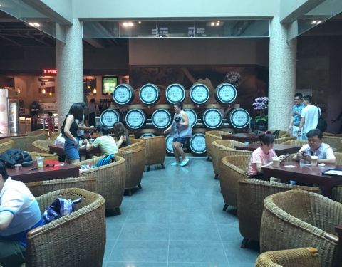 能眺望到远处龟山,也能俯瞰全城。一路盘山公路上到一馆,咖啡城堡果真不同凡响