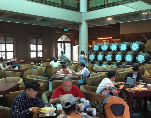一路盘山公路上到一馆,咖啡城堡果真不同凡响。能眺望到远处龟山,也能俯瞰全城。城堡内还能走到露台。内部和外面都能小憩,停车位也充足。